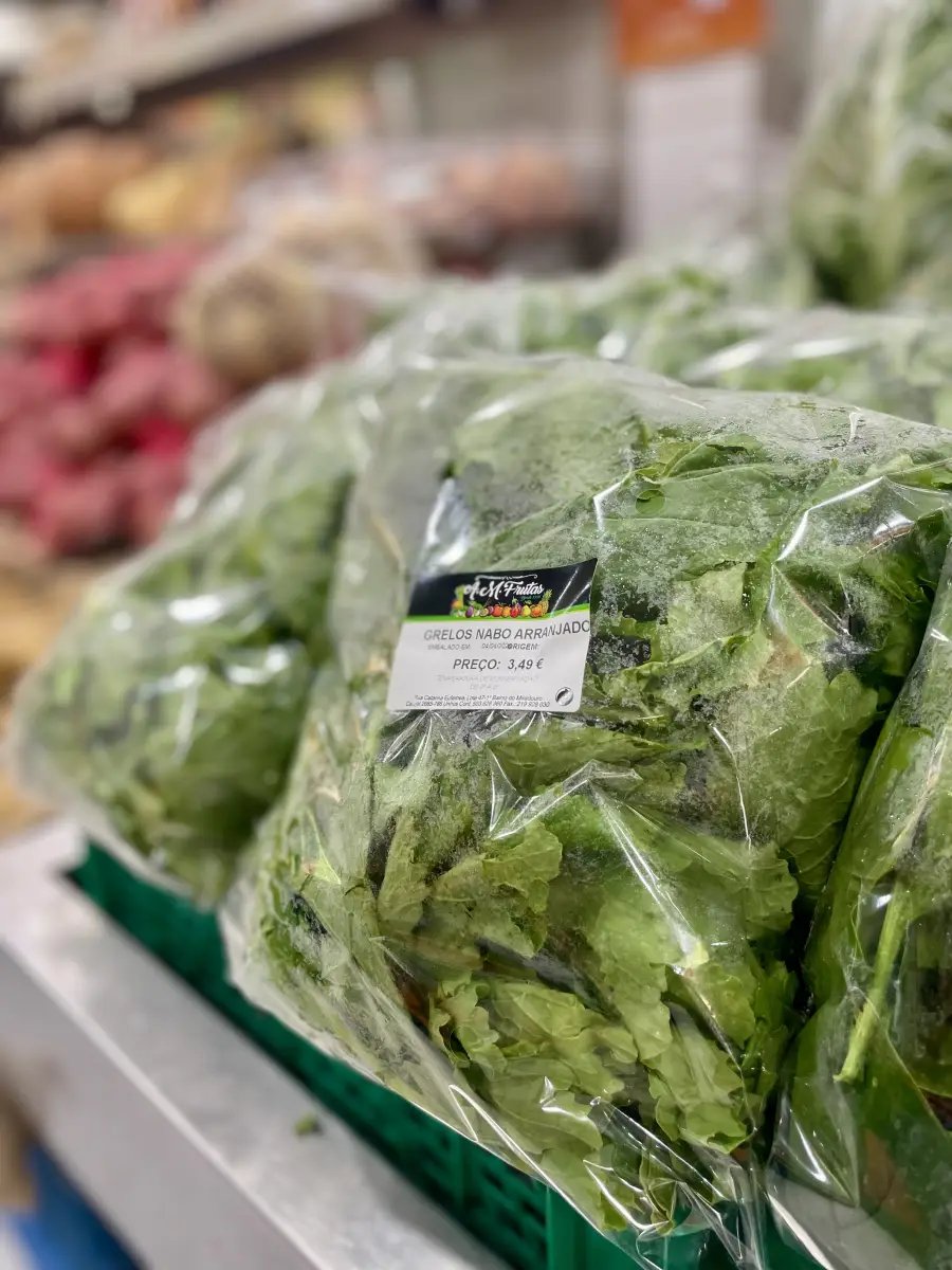 Embalagem de Grelos nabo arranjados